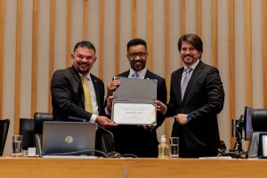 Durante a cerimônia, o magistrado também recebeu do Instituto Brasileiro de Educação em Direitos e Fraternidade (IEDF) a Placa de Juiz da Fraternidade, entregue pela presidente da instituição, Sandra Taya. A distinção celebra o compromisso de Fábio Esteves com os valores da fraternidade, igualdade e promoção dos direitos humanos.